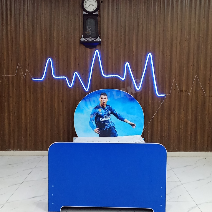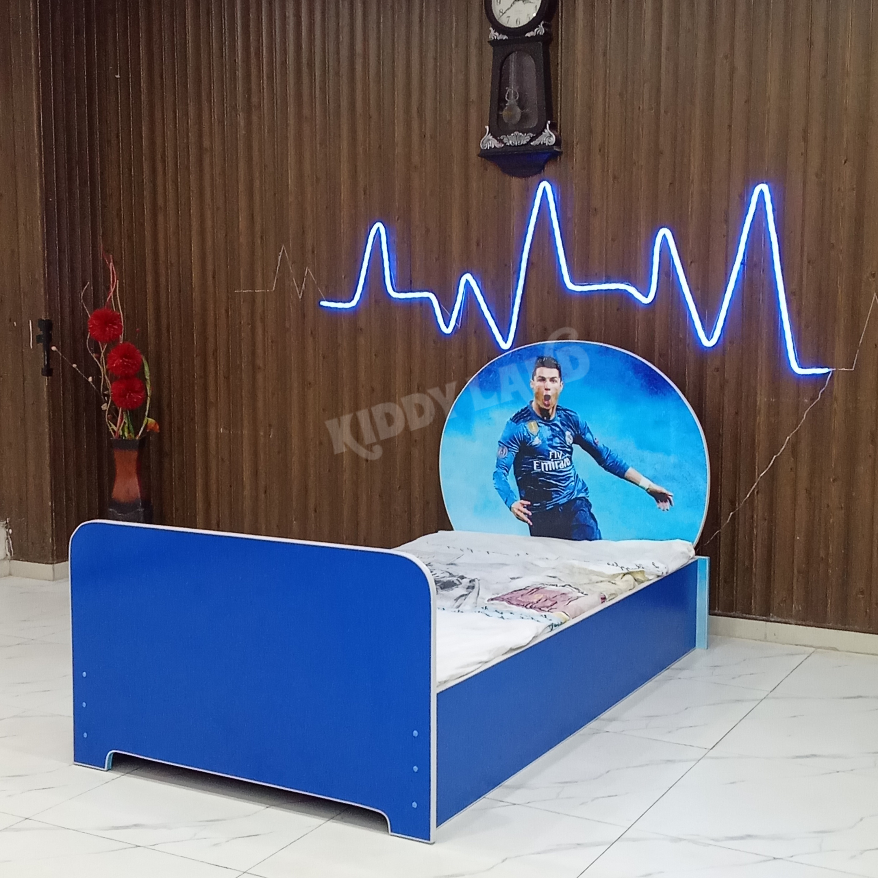 Ronaldo Theme Bed Color: Blue Material: Wooden Laminated Sheet Dimension: Bed Size: Length 72 Inches, Width 36 Inches Mattress Size: Length 72 Inches, Width 36 Inches(Mattress Not Included) Age Limit: 25 Years...
