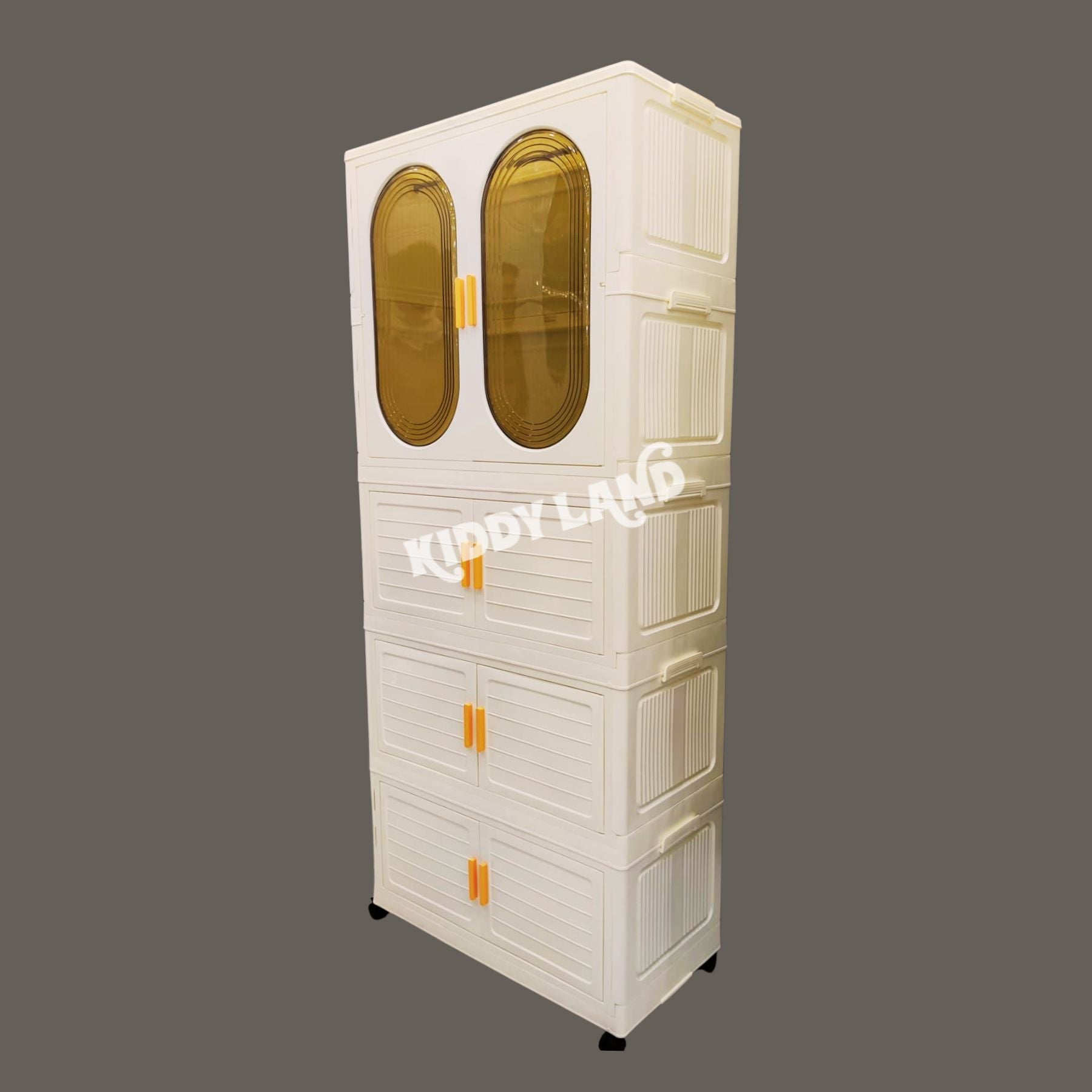 The wardrobe comes with multiple spacious cabinets, perfect for storing baby clothes, toys, books, and accessories. Its lightweight design makes it easy to move, while the strong structure ensures long-lasting use.