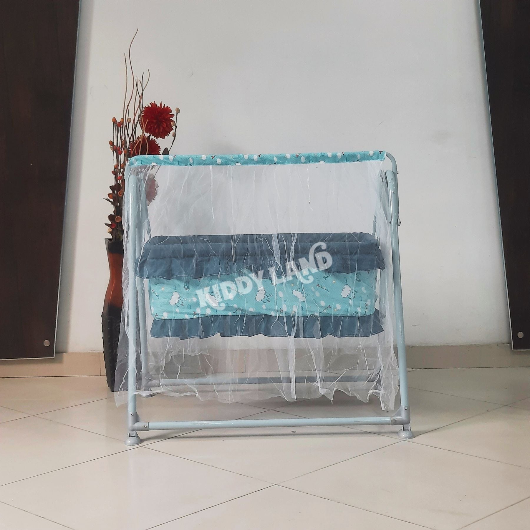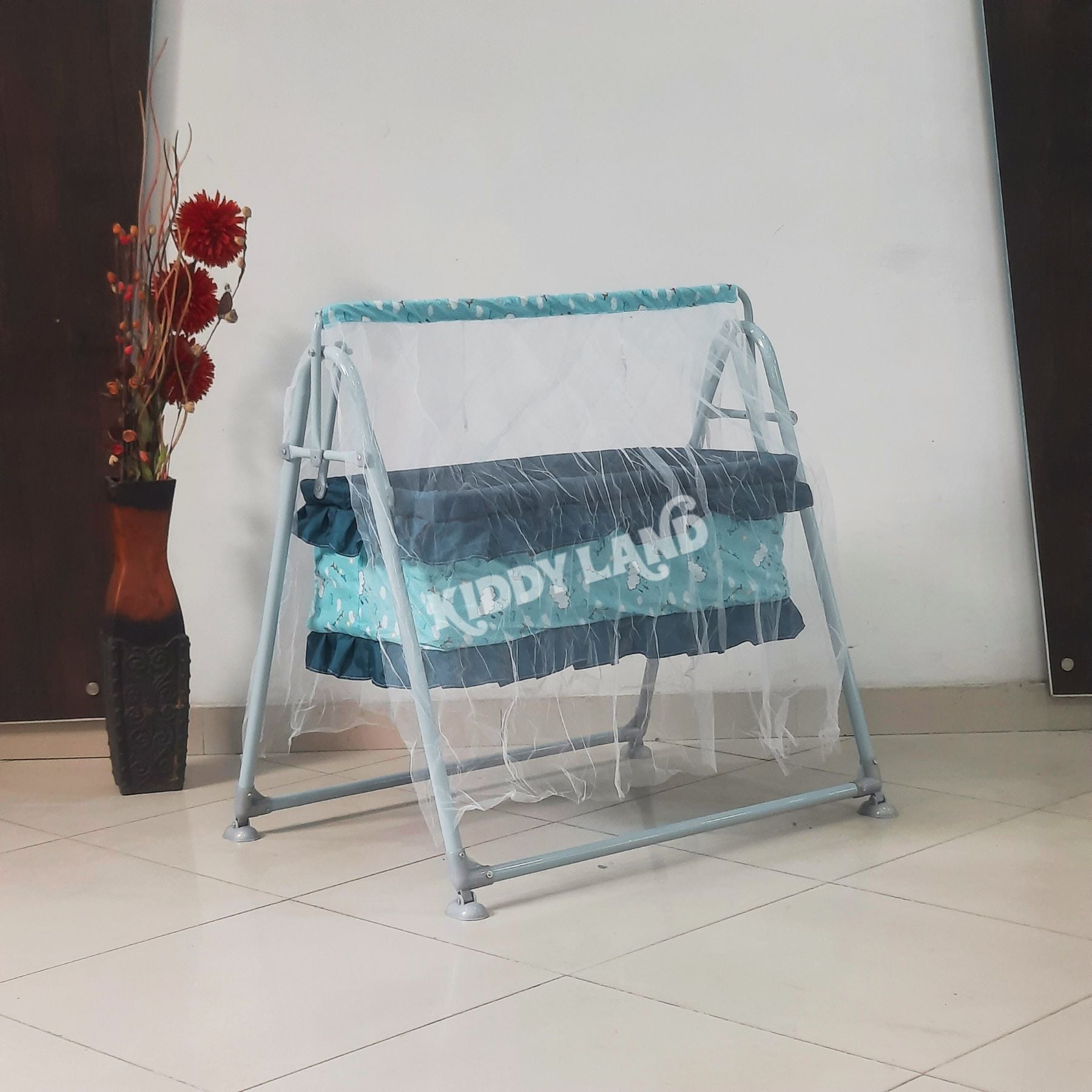 Give your baby a peaceful and comfortable sleep with the Kiddyland Baby Swing Jhula (Jhulangi). This baby swing is designed with a strong metal frame and soft fabric cradle to provide maximum safety, comfort, and gentle swinging motion for newborns and infants.