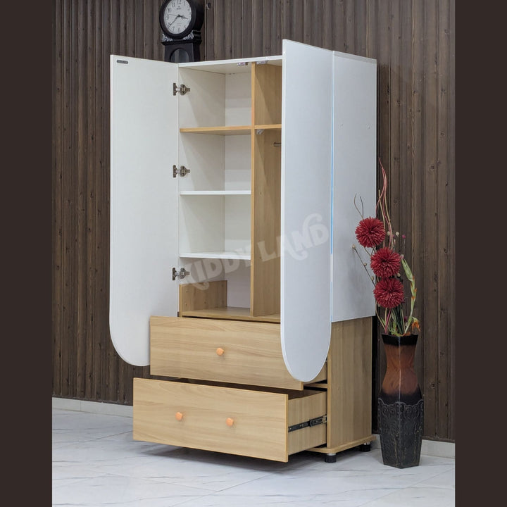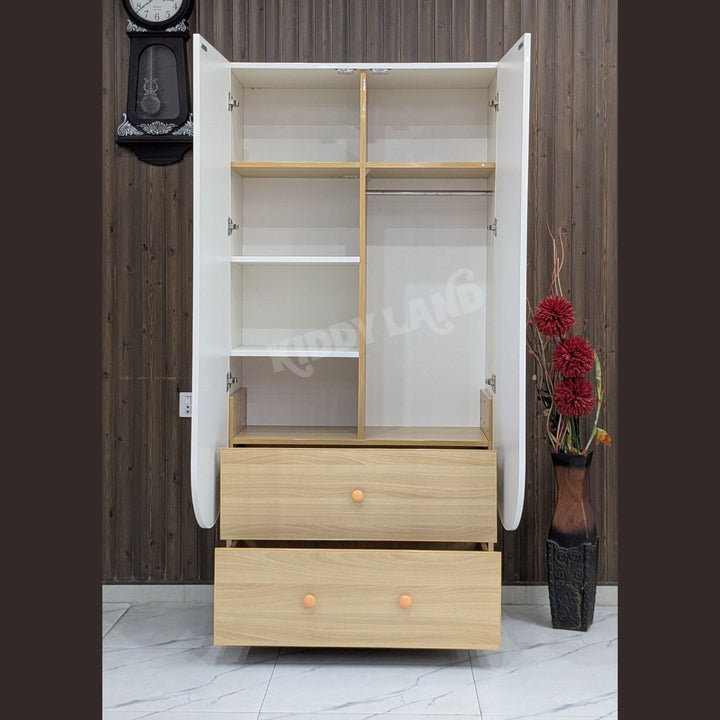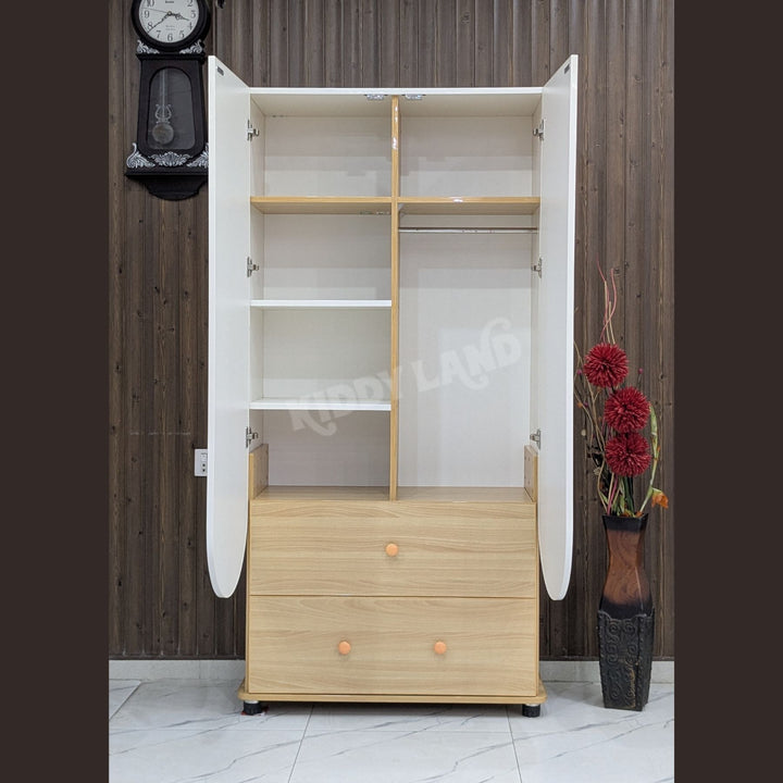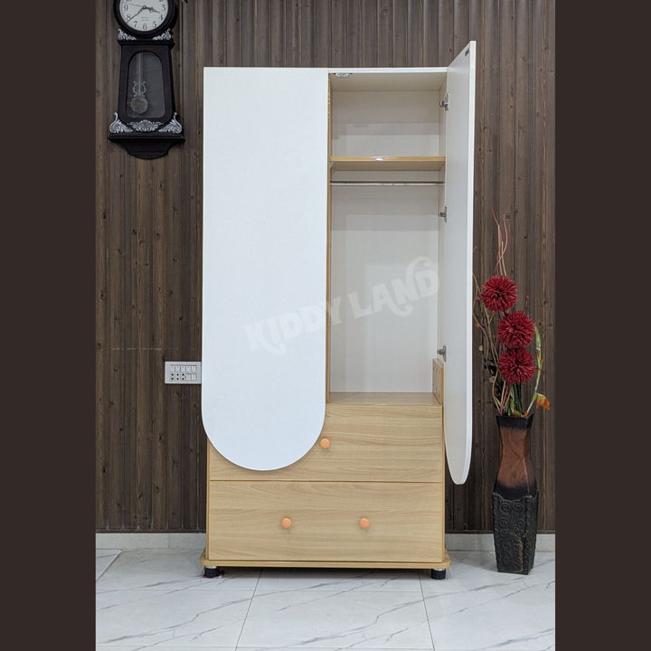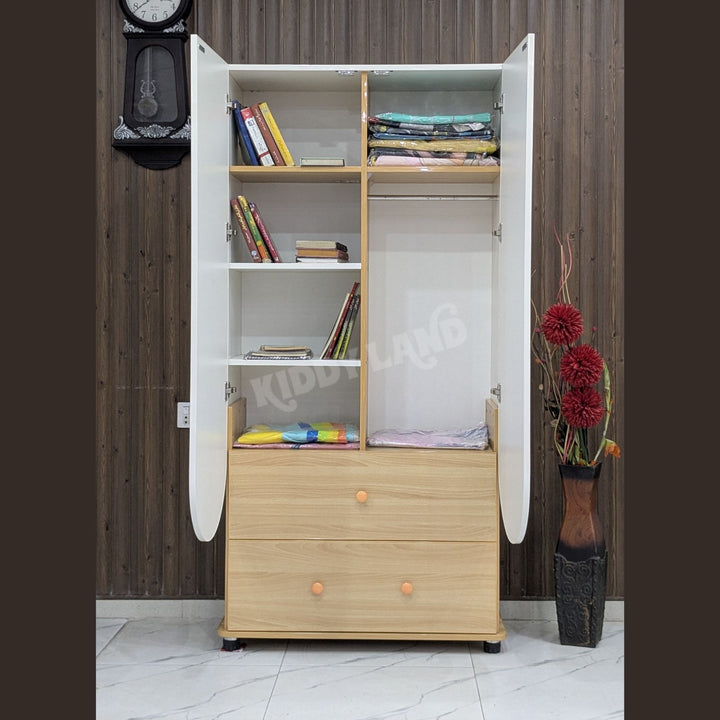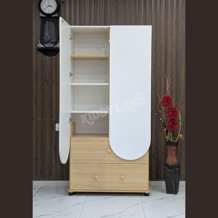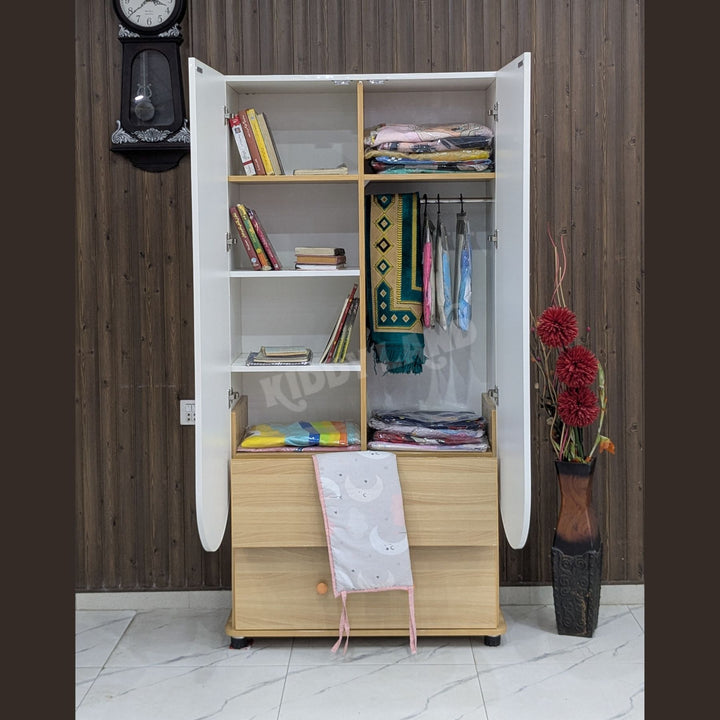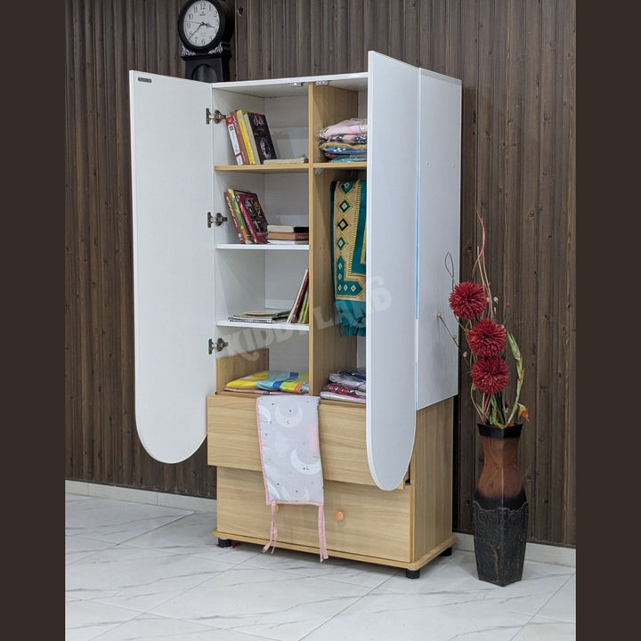 Bring charm and functionality to your child’s room with this adorable dual-tone wardrobe in a soft white and light wood finish. Designed especially for kids, it combines playful elegance with practical storage to keep clothes, toys, and accessories neatly organized.