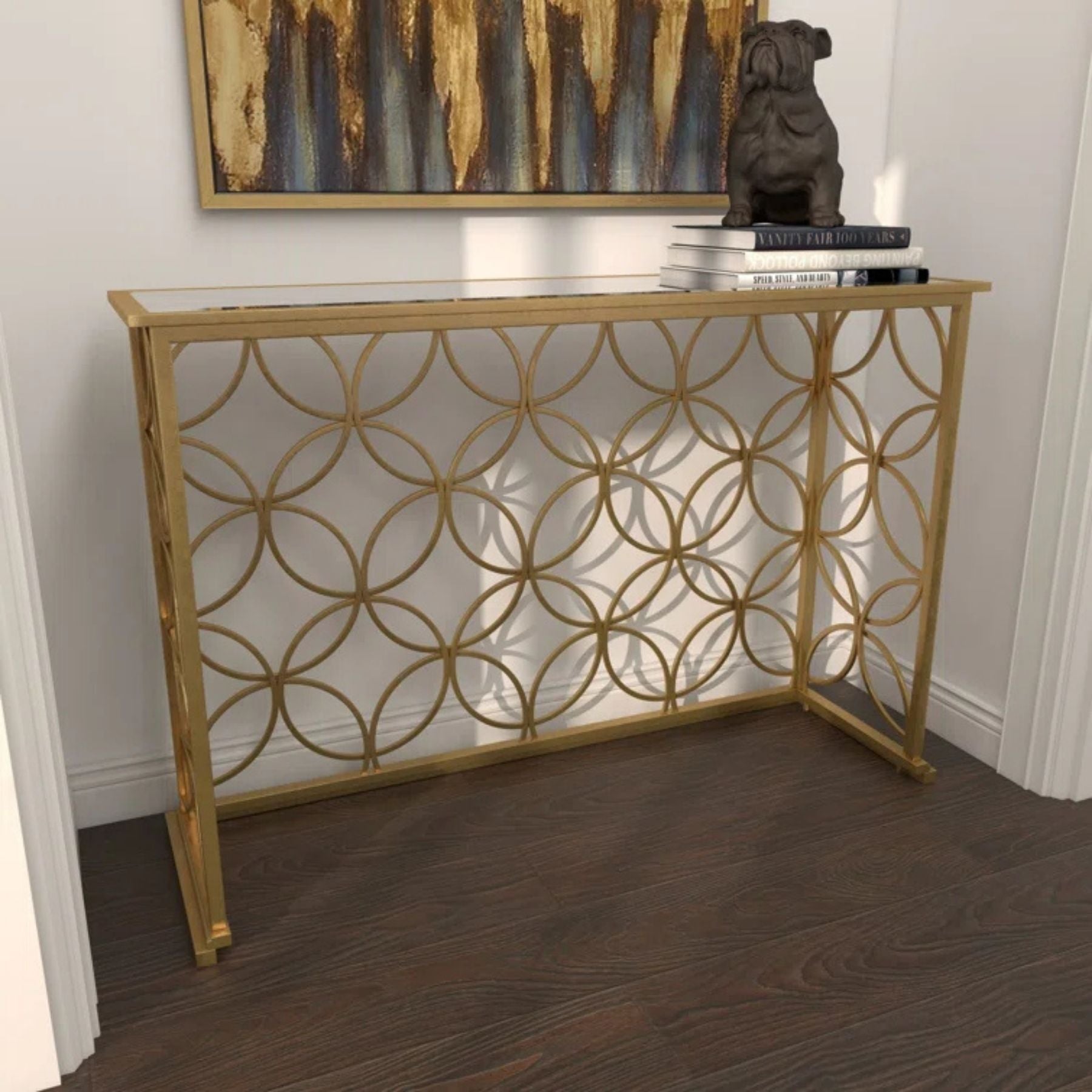 It embodies a traditional or glam aesthetic, suitable for adding a luxurious touch to entryways, hallways, or living rooms. Color : Golden Material: Top 6mm Glass Frame Iron Dimension: Length 47...