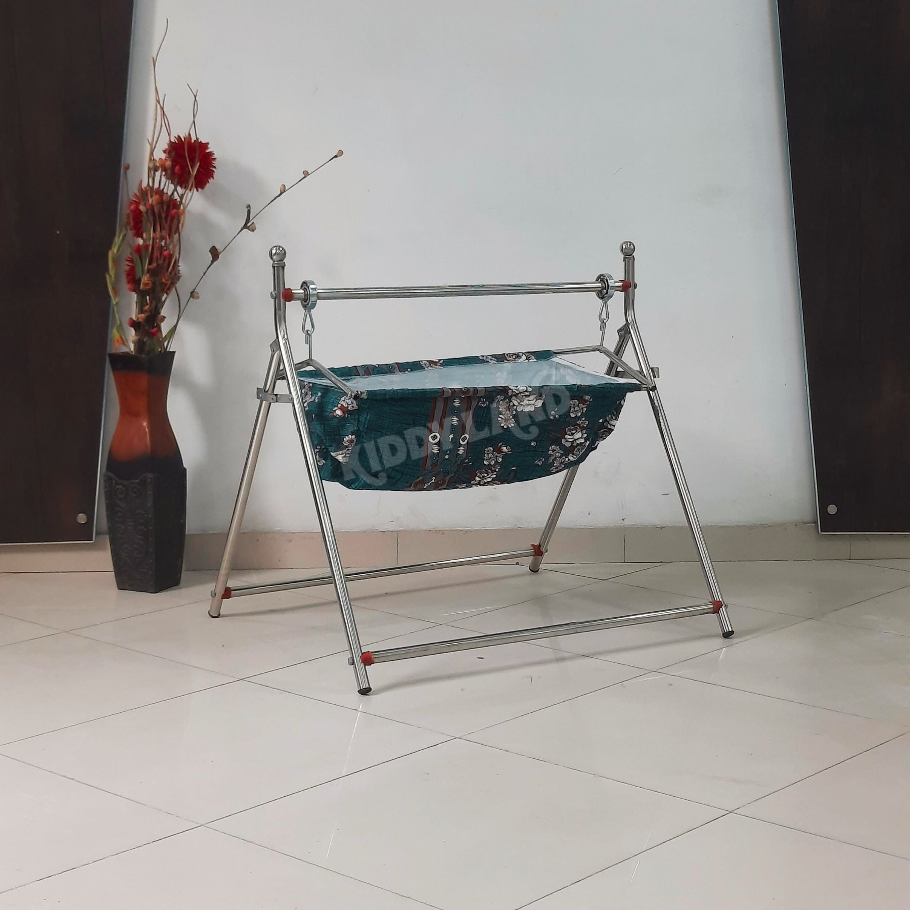 Give your baby a safe, comfortable, and soothing sleep with the Kiddyland Premium Baby Swing Jhula. This baby swing is made with a strong stainless steel frame and soft hanging cradle fabric to provide maximum comfort and gentle rocking motion for newborns and infants.