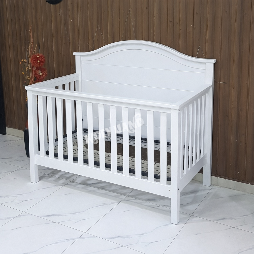 Premium White Wooden Baby Cot for Newborns
