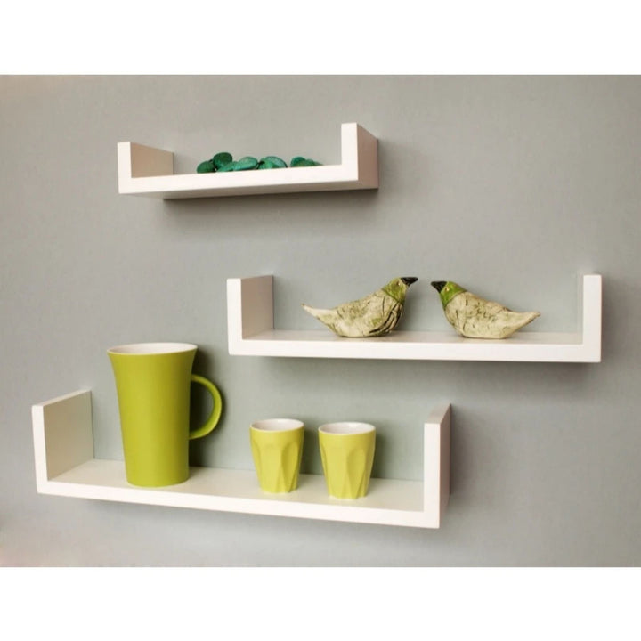 Overall size24″ W x 6″ D x 5″ H20″ W x 6″ D x 5″ H16″ W x 6″ D x 5″ HMade from Laminated SheetU-Shape Wooden Float ShelvesHome Decor, Set of 3Easy to fix,...